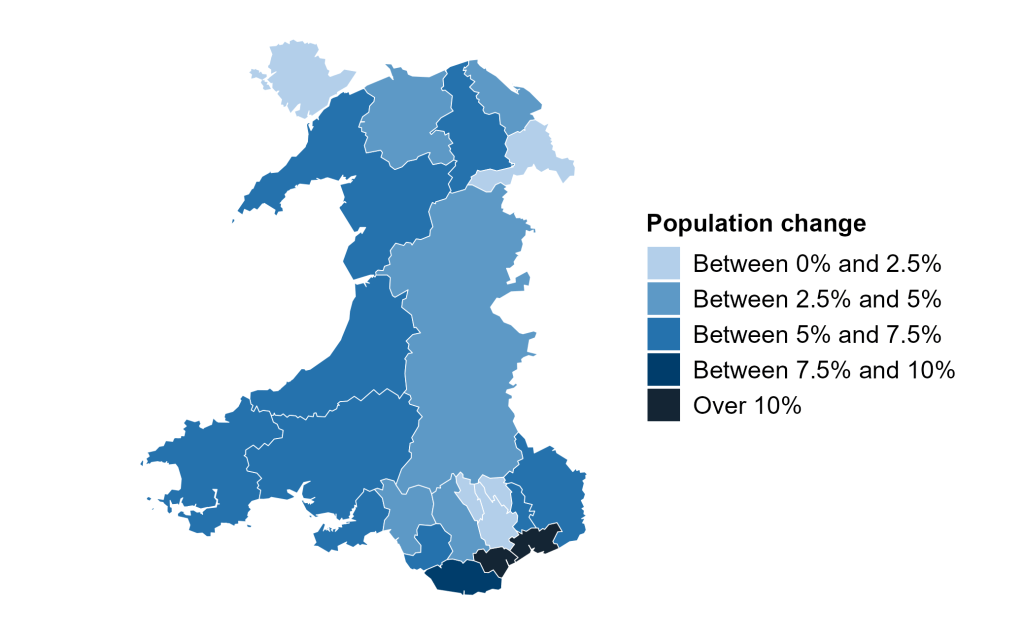 - add up the local authority population projections if you are interested in population projections for Wales. Instead, use the ONS’s 2022-based national population projections (ONS)